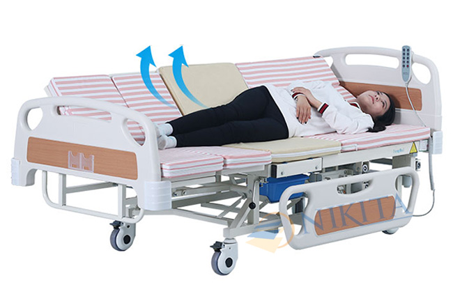 Nghiêng người trái - phải từ 0°- 85°: thực hiện chức năng trở mình cho bệnh nhân bằng các nút nhấn trên bảng điều khiển. Chức năng này giúp bệnh nhân thường xuyên lật người, tránh sự xuất hiện của triệu chứng bedsores (chứng thối loét vì nằm liệt giường lâu ngày), đồng thời làm giảm hiện tượng phù nề, hoại tử mô.... gây teo cơ, giúp lưu thông máu và phục hồi hoạt động của bệnh nhân.