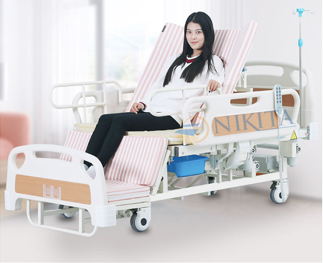 Bô vệ sinh: Sử dụng tay gạt để điều khiển bô vệ sinh, một tấm đệm trên giường sẽ dần tụt xuống, cùng lúc giá bô dưới gầm giường chuyển động tịnh tiến vào. Bô và tấm đệm khoét lỗ chuyển động đều ngược chiều; sẽ dừng lại khi bô bao trọn lỗ khoét trên đệm. Bệnh nhân đi vệ sinh xong, gạt ngược lại tay về vị trí ban đầu, sau đó đem chất thải đi đổ.