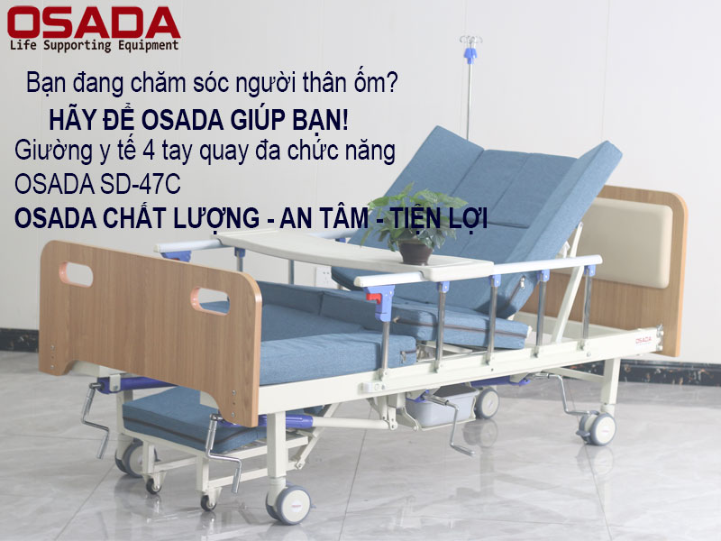 Giường SD-47C được trang bị đầy đủ chức năng giúp công việc chăm sóc người bệnh được dễ dàng hơn, sau đây chúng ta cùng nhau đi tìm hiểu các chức năng cụ thể của sản phẩm giường OSADA 4 tay quay này như sau: