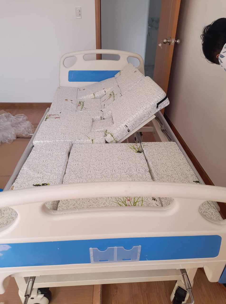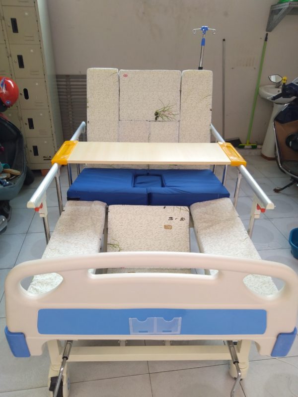4- Chức năng bô vệ sinh: Với chức năng bô vệ sinh này giúp người bệnh có thể đi vệ sinh ngay tại giường một cách thoãi mái, cách sử dụng vô cùng đơn giãn. Người chăm sóc cho người bệnh chỉ cần cất miếng nệm được thiết kế sẵn ngay lỗ bô và sử dụng cần gạt hoặc tay quay bô. Lúc đó bô sẽ di chuyển từ từ vào ngay lỗ bô để cho người bệnh đi vệ sinh. Lúc vệ sinh xong người chăm sóc chỉ cần dùng cần gạt hoặc tay quay đưa bô ra ngoài và bỏ miếng nệm lại chổ củ để người bệnh có thể nằm.