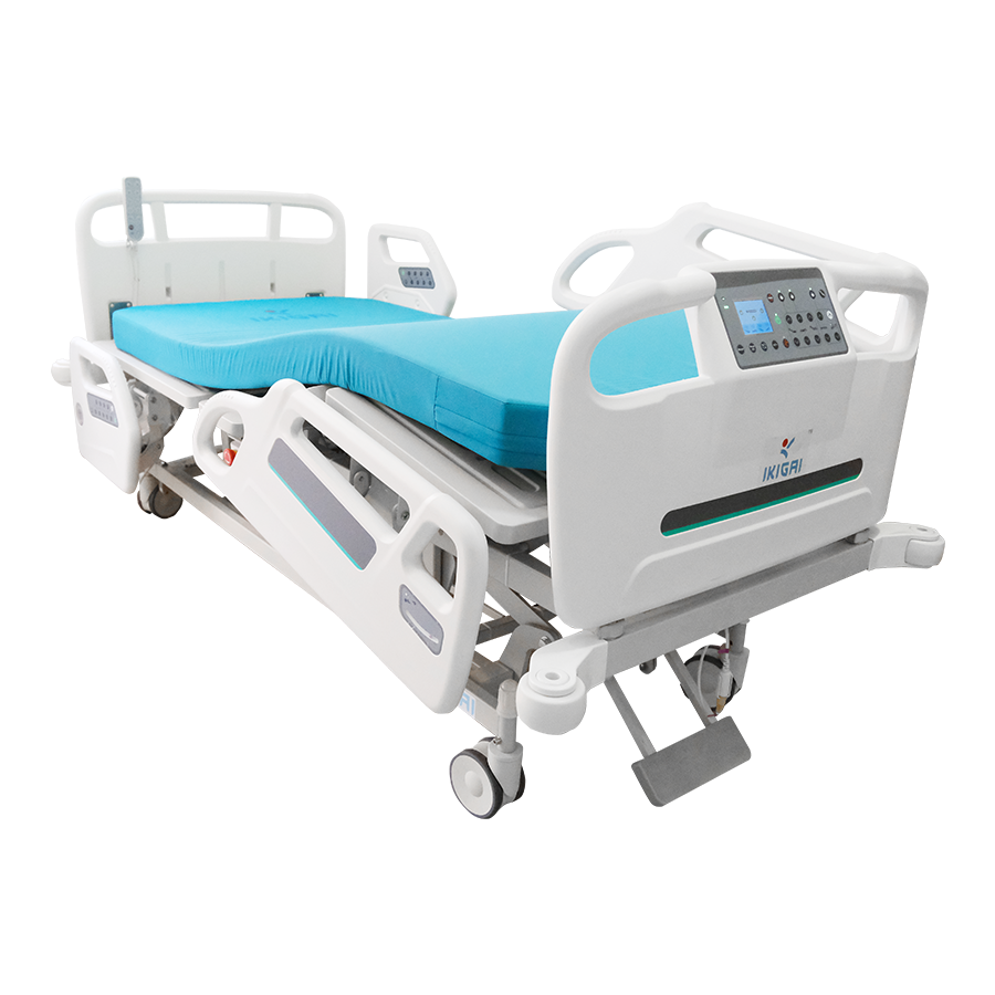 6- Tích hợp cân điện tử Ngay tại phần đuôi giường, hệ thống cân điện tử được thiết kế liền mạch cùng bảng điều khiển, mang đến khả năng theo dõi trọng lượng người bệnh một cách nhẹ nhàng, chính xác – mà không làm gián đoạn quá trình nghỉ ngơi.
