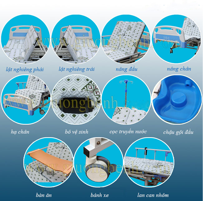Giường y tế có thể lật nghiêng từ 0°- 85° mỗi bên, giường giúp bệnh nhân thường xuyên lật người, tránh bị chứng loét da vì nằm liệt giường lâu ngày, đồng thời làm giảm hiện tượng phù nề, hoại tử mô.... gây teo cơ, giúp lưu thông máu và phục hồi hoạt động của bệnh nhân.